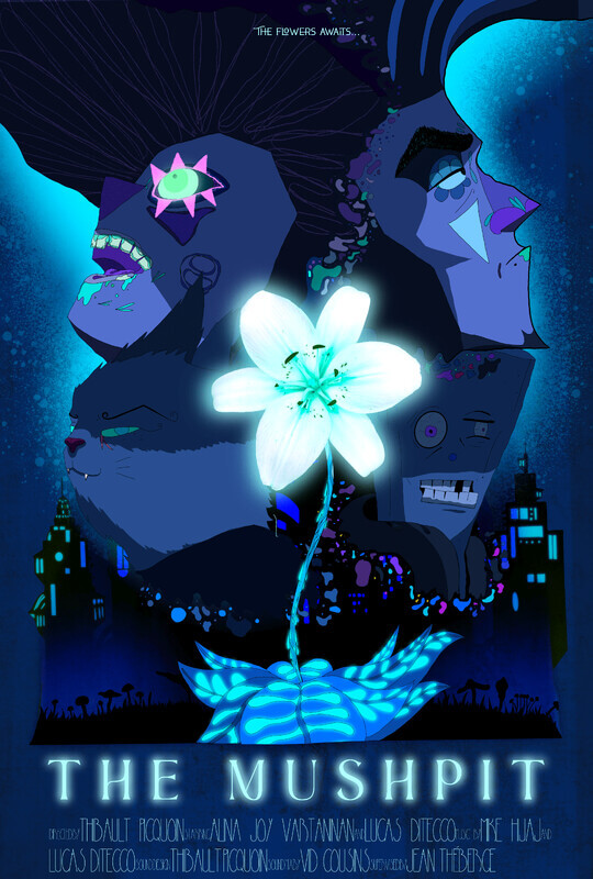 Canada 2024Jimmy G. Fungus is a young mushroom stuck in the lowest pit of existence: the Mushpit, a place where everyone he loved met their demise, full of creeps, and where the light never reaches. After another night of heavy drinking in a bar, a stranger calls him out on his cowardice and the dream he gave up on, due to the loss of a dear friend and his grief. This confrontation hits jimmy deeply, triggering a trippy existential crisis where he meet his deceased friend telling him to realize his dream. Once awaken from this mental journey, Jimmy decides to leave the mushpit to pursue his dream of reaching the surface and seeing the flowers there.